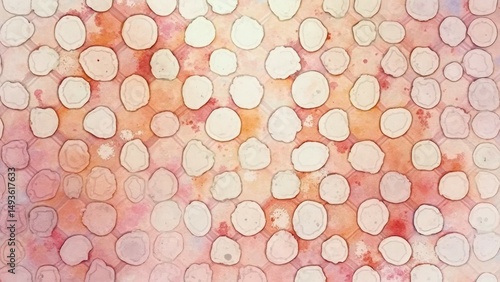 Abstract watercolor texture with pink and orange hues and circular patterns