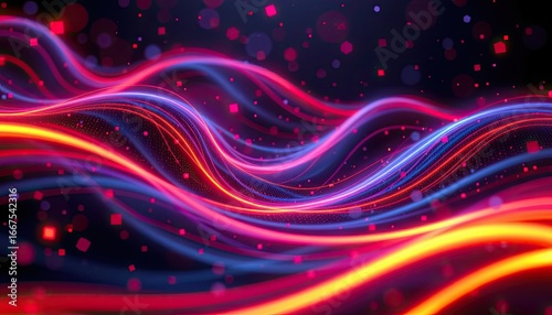 Abstract Wave Patterns with Colorful Light Trails and Floating Particles in Dark Background