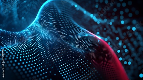 Abstract Waveform with Dots and Glowing Lines in Blue and RedColors for Digital Background Design