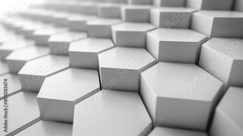 Abstract white geometric hexagon pattern background with modern 3D honeycomb structure.