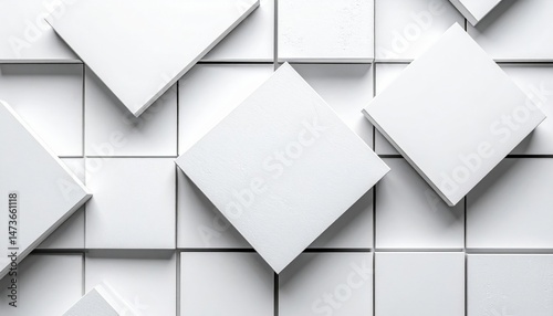 Abstract white geometric shapes indoor setting digital art minimalist design close-up view modern aesthetics