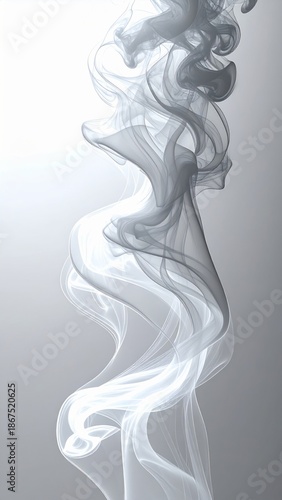 Abstract White Smoke Plume Swirling Vertically on a Gradient Grey Background