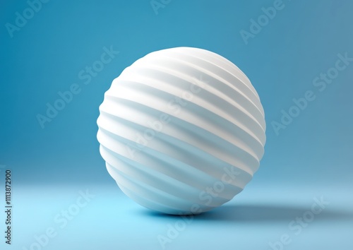 Abstract White Sphere with Geometric Stripes on a Blue Background