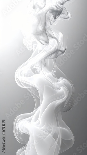 Abstract White Swirling Fluid on Gray Gradient Background with Soft Lighting