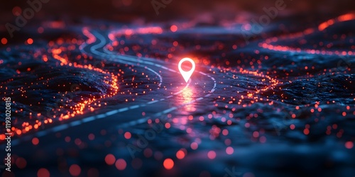 Abstract winding road with a glowing destination icon at the end.