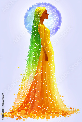 Abstract woman silhouette in radiant aura symbolizing existence self-discovery and meaning of life