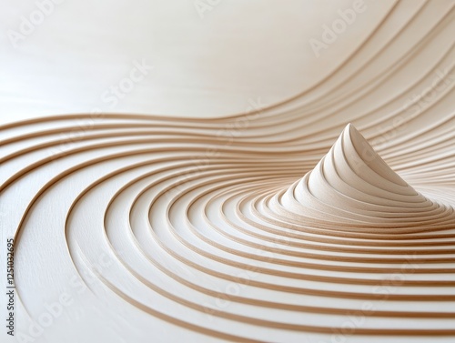 Abstract wooden sculpture with flowing lines and peaks in a serene and harmonious design aesthetic, emphasizing minimalism