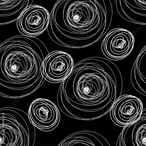 Abstraction. Seamless pattern. Chaotic white lines on a black background. Vector image.