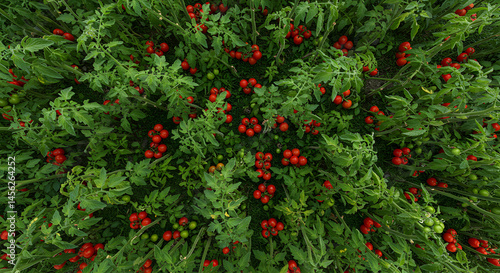 Abundance Of Cherry Tomatoes Growing In An Organic Farm Field