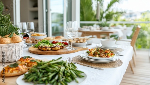 Abundant Outdoor Meal with Grilled Vegetables and Bread