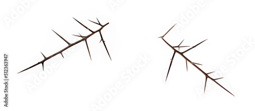 Acacia tree branch with thorns isolated on white background
