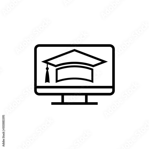 Academic cap on computer screen icon. Graduate Cap Desktop Screen logo