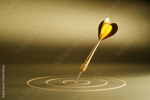 Achieving a Strategic Goal - A close-up of a golden dart hitting the bullseye on a target, symbolizing a successful business goal, strategic focus, and achievement