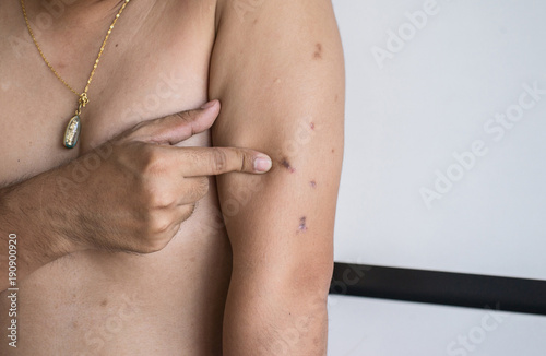 Acne scars black color with problematic problem skin closeup