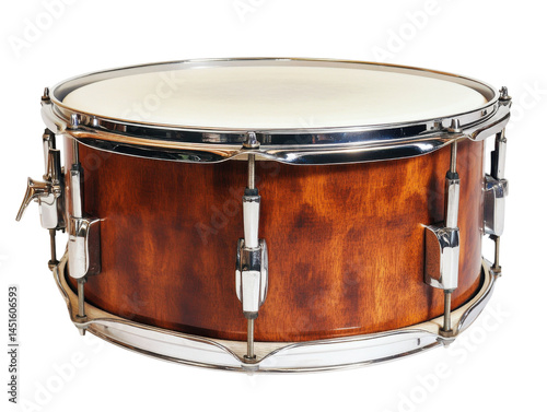 Acoustic Drum Snare Viewed Front-On with Metal Tension Hoops for Musical Instrument, Drumming, and Percussion Concepts