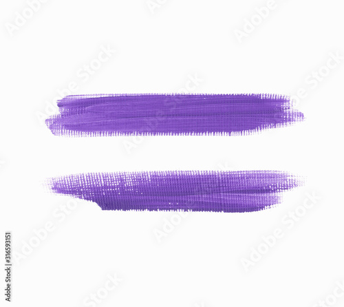 Acrylic art brush paint texture stripes set isolated vector background. Purple underline stroke set.