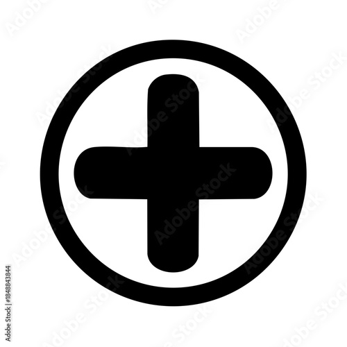 Add Button: Simple Plus Sign Inside Circle Icon, Black Symbol, Addition Symbol
