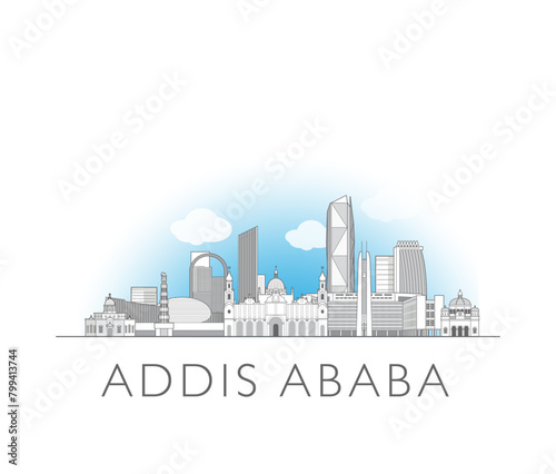 Addis Ababa, Ethiopia cityscape line art style vector illustration