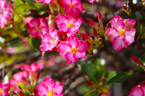 Adenium obesum, Pink desert rose flowers in full bloom.