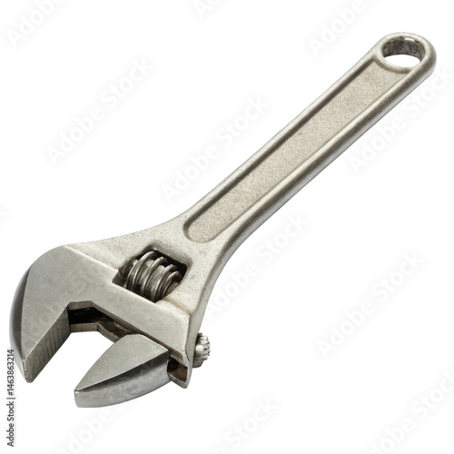 Adjustable wrench on a black background, showcasing its metallic finish.