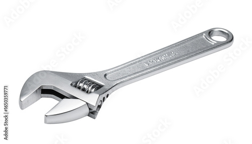 Adjustable wrench tool with metallic shine, isolated on transparent background
