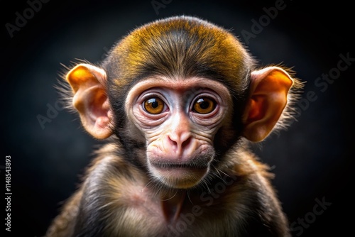 Adorable Baby Monkey Close-Up Macro Photography, Dark Background Wildlife Animal Portrait