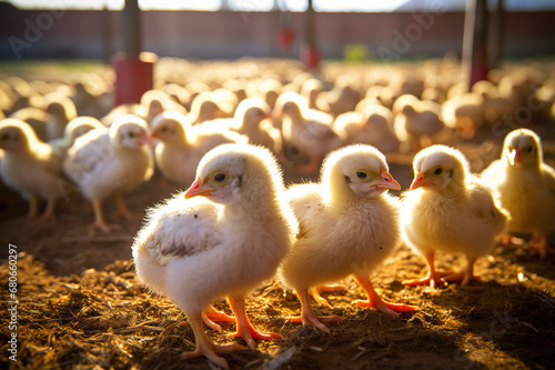 Adorable Brood A Charming Group of Chicks on a Thriving Broilers Farm, Capturing the Essence of Sustainable Poultry Farmingcreated with Generative AI