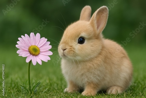 Adorable bunny beside flower