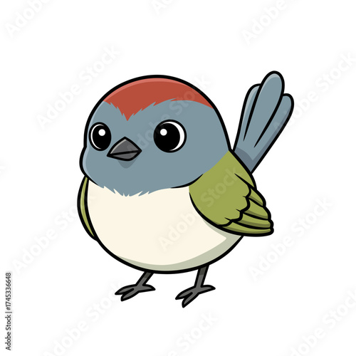 Adorable cartoon bird with colorful feathers and big eyes. Ideal for children’s books, zoo posters, wildlife themes, nature designs, or cute animal character projects