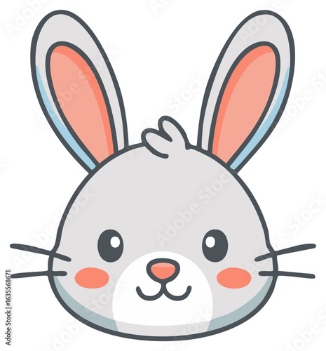 Adorable cartoon bunny head illustration with grey fur pink cheeks and large ears