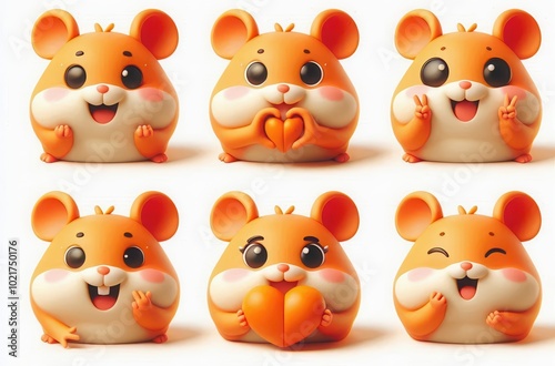Adorable cartoon hamsters displaying a range of expressions, perfect for children's products, educational materials, or playful branding.