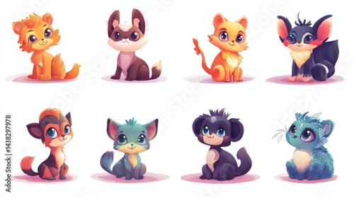 Adorable Collection of Cartoon Animals: Eight Unique and Playful Creatures