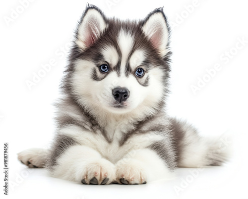 Adorable fluffy puppy with striking blue eyes, showcasing a playful and charming personality, perfect for pet lovers.