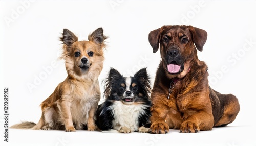 Adorable Group of Mixed Pets Posing Against a Clean White Backdrop, Radiating Playful Energies and Warmth in a Snapshot of Friendship