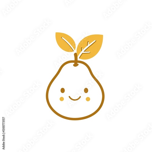 Adorable Happy Pear with Leaves: A Delightful Minimalist Line Art Logo Design for Handmade Gifts!