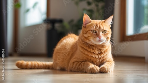 Adorable Orange Tabby Cat Sitting on White Background
