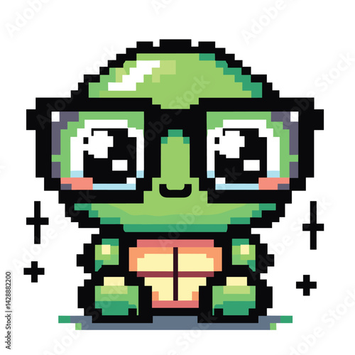 Adorable Pixel Art Turtle with Glasses - Cute Retro Style Cartoon