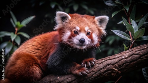 Adorable Red Panda Climbing Tree Branches on a White Background for Nature and Wildlife Themes