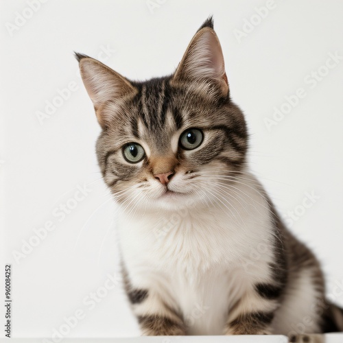 Adorable Tabby Cat Sitting on White Background