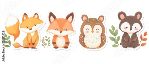 Adorable Woodland Animals: Fox, Owl, and Bear Illustration
