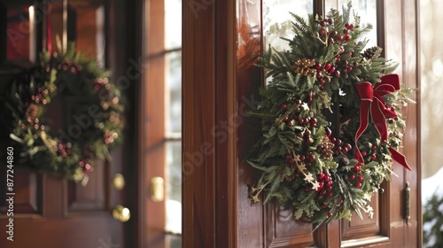 Adorn doors and windows with festive wreaths, crafted from evergreen branches, berries, and ribbons.