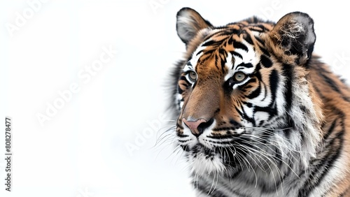 Adult tiger isolated on white background with intense gaze. Concept Wildlife Photography, Animal Portraits, White Background, Intense Gaze, Tiger Portrait