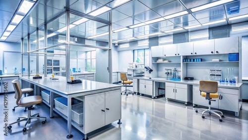 Advanced biotech lab with gene editing tools and cell culture systems in a sterile environment, microbiology, cell culture