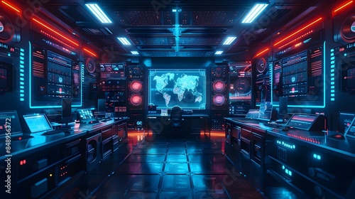 Advanced Cyber Lab with Glowing Holographic Displays and High Tech Equipment
