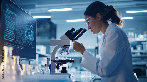 Advanced laboratory research with scientist examining DNA sample