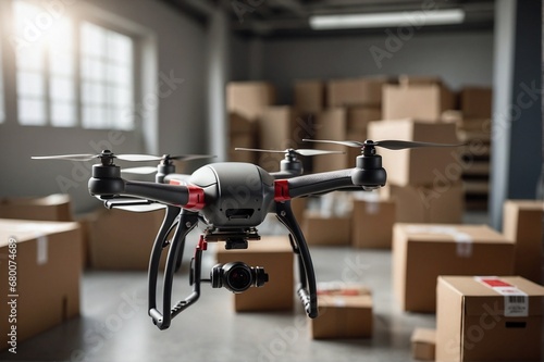 Advanced Technologies: Quadcopter Drone Sorting Mail Packages in a Post Office
