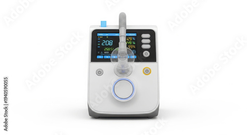 Advanced White and Blue CPAP Ventilator Machine with Digital Display and Controls for Respiratory Support and Sleep Apnea Treatment