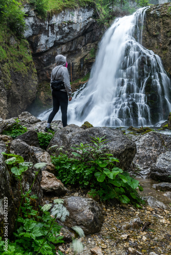 Adventure hiker Exploring Gollinger Waterfall: Austria's Natural Treasure