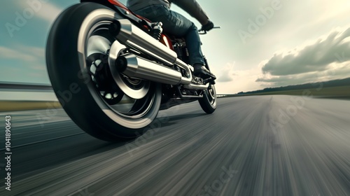 Adventure ride on Asphalt Road with Chopper - Motorcycle Driver at High Speed, Motorbike Transport Through Countryside Highway in Powerful Motion