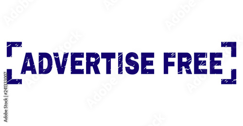 ADVERTISE FREE tag seal print with corroded effect. Text tag is placed inside corners. Blue vector rubber print of ADVERTISE FREE with grunge texture.